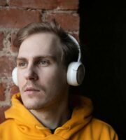 A traditional street food stall on a motorcycle cart, displaying snacks and fresh produce, covered by a blue tarpaulin. Various items are placed on banana leaves, and condiments are arranged on the counter. A vendor stands nearby, ready to serve customers. There are handwritten signs in a local language, and a bustling street with parked cars can be seen in the background.